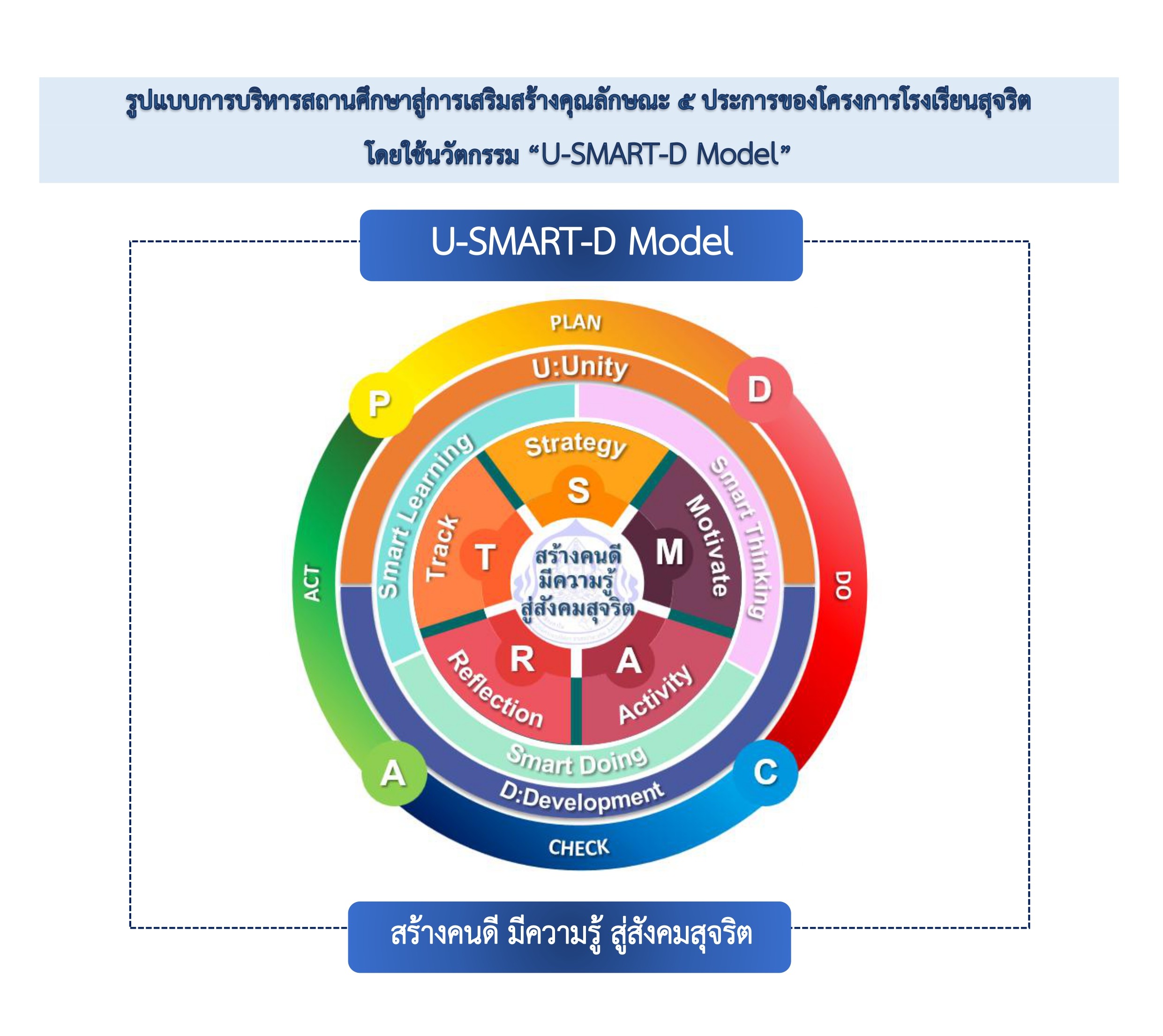 รูปแบบการบริหารสถานศึกษาสู่การเสริมสร้างคุณลักษณะ 5 ประการของโครงการโรงเรียนสุจริต โดยใช้นวัตกรรม U-SMART-D Model