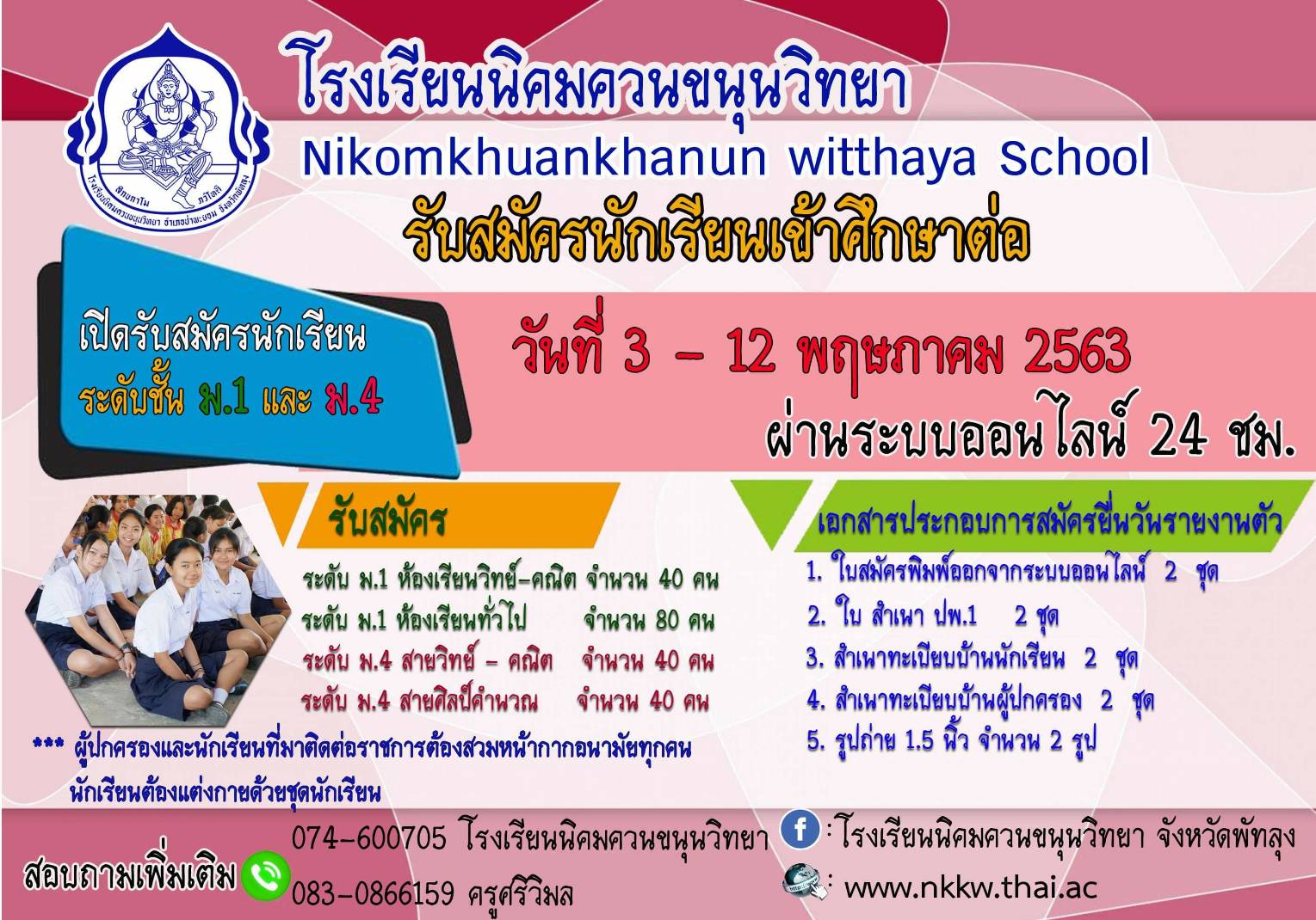 กำหนดการรับสมัครนักเรียนระดับชั้น ม.1 และ ม.4 แบบออนไลน์ ปีการศึกษา 2563 ระหว่างวันที่ 3-12 พ.ค. 2563