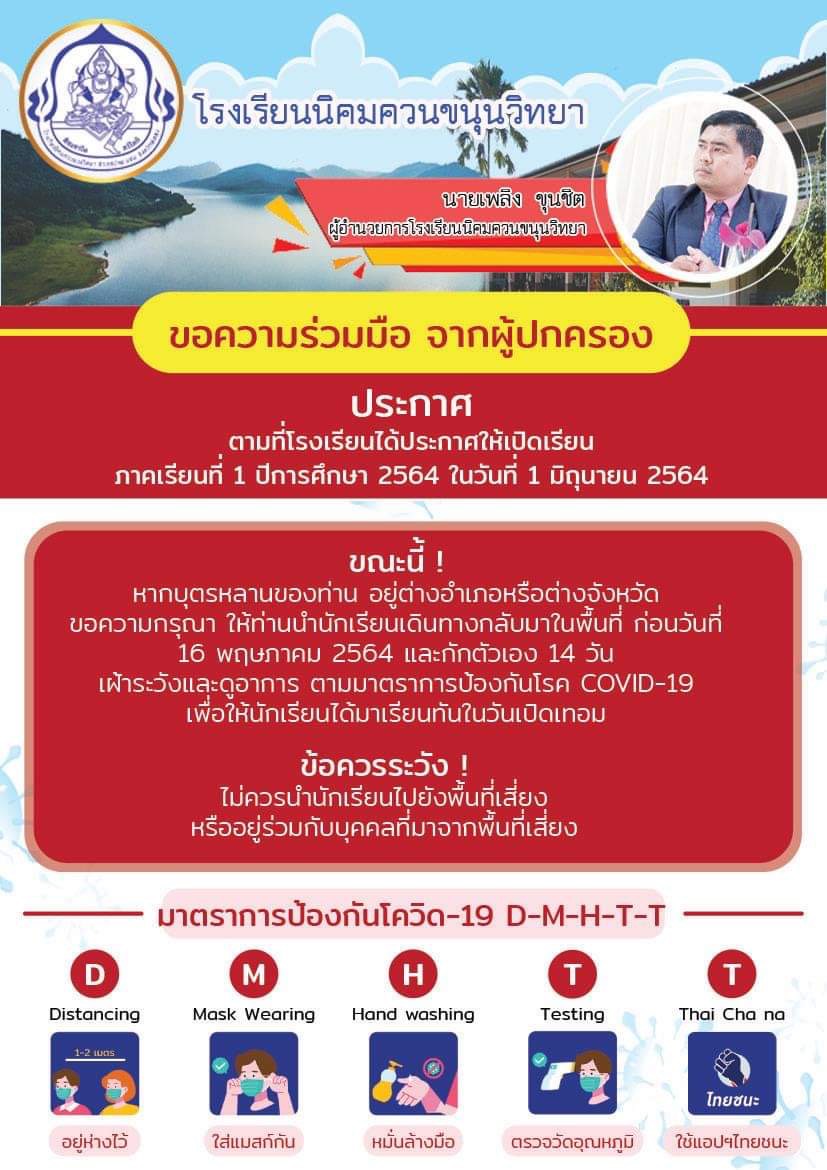 โรงเรียนนิคมควนขนุนวิทยา ขอความร่วมมือจากผู้ปกครอง