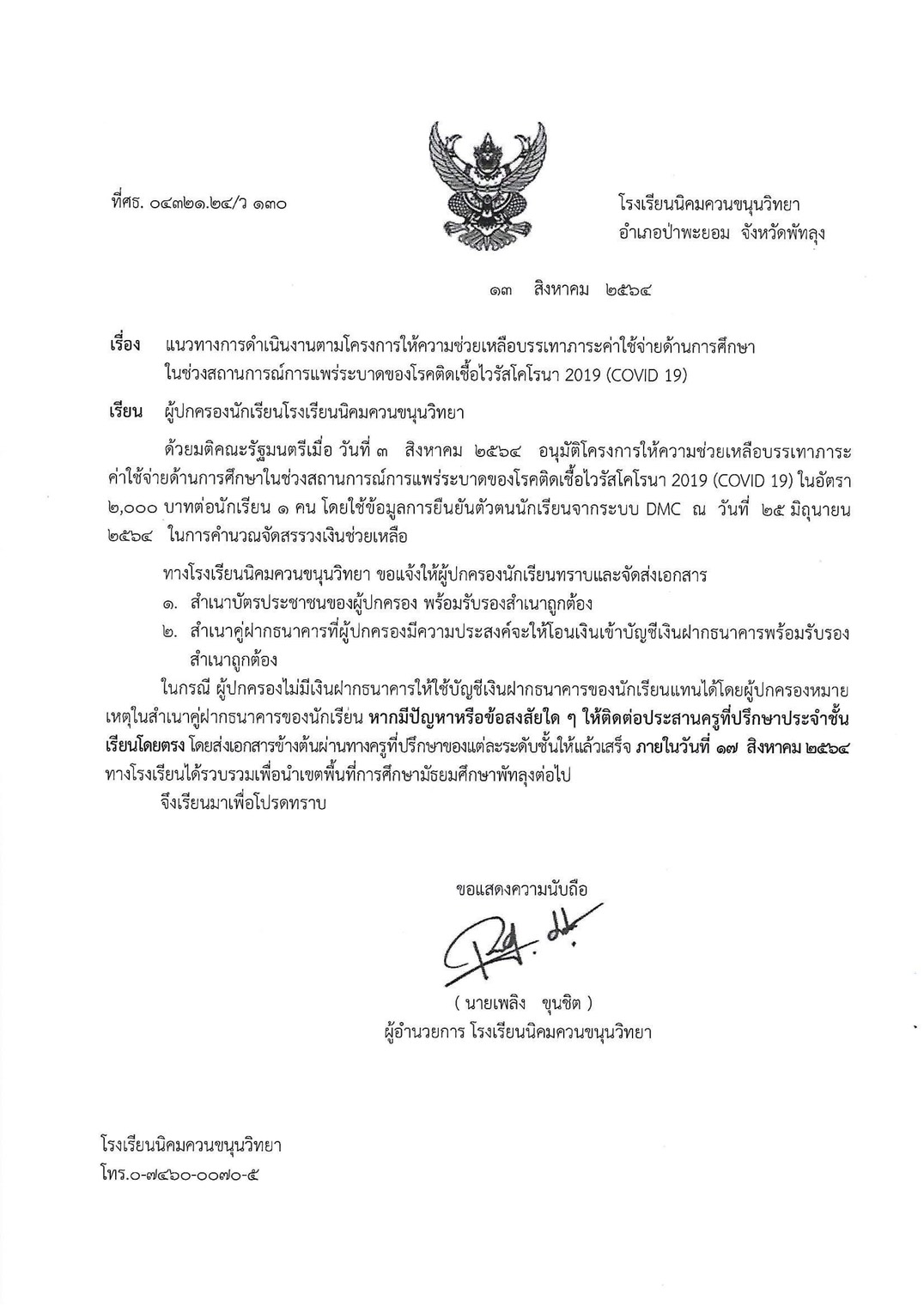 แนวทางการดำเนินงานตามโครงการให้ความช่วยเหลือบรรเทาภาระค่าใช้จ่ายด้านการศึกษาในช่วงสถานการณ์การแพร่ระบาดของโรค COVID19