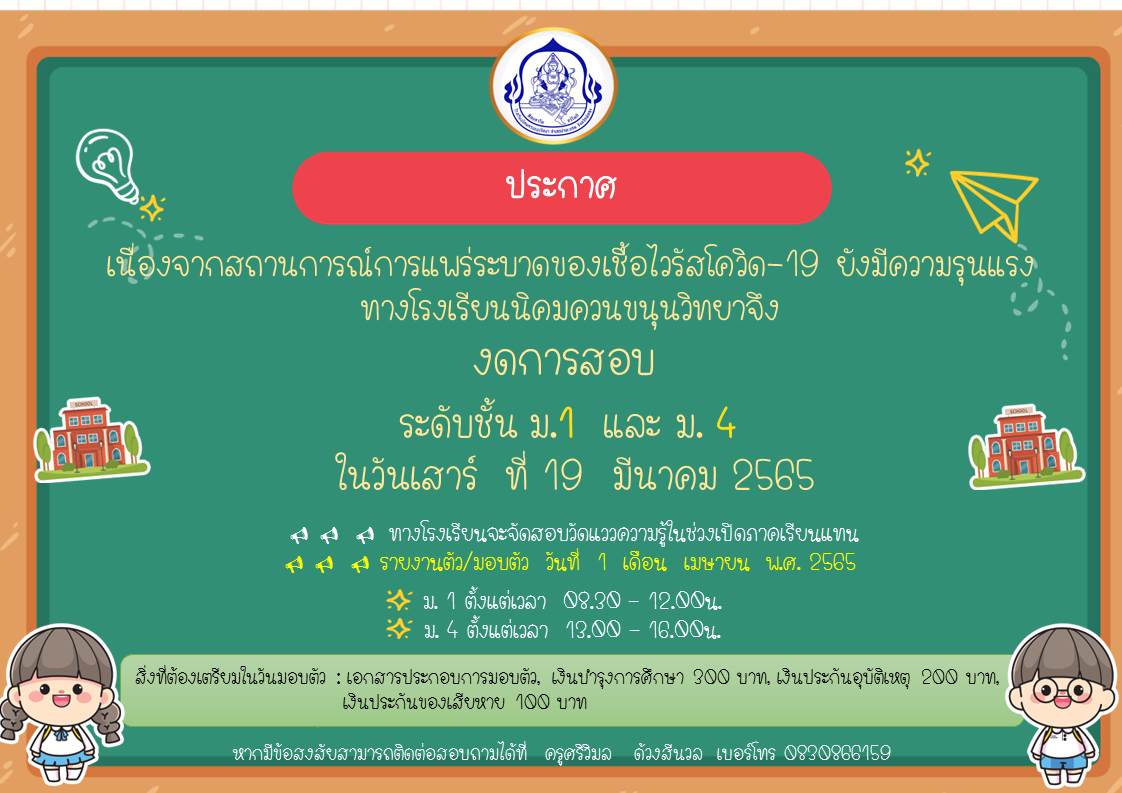 ประกาศ งดการสอบ ระดับชั้น ม. 1 และ ม. 4 ในวันเสาร์ที่ 19 มีนาคม 2565 นี้